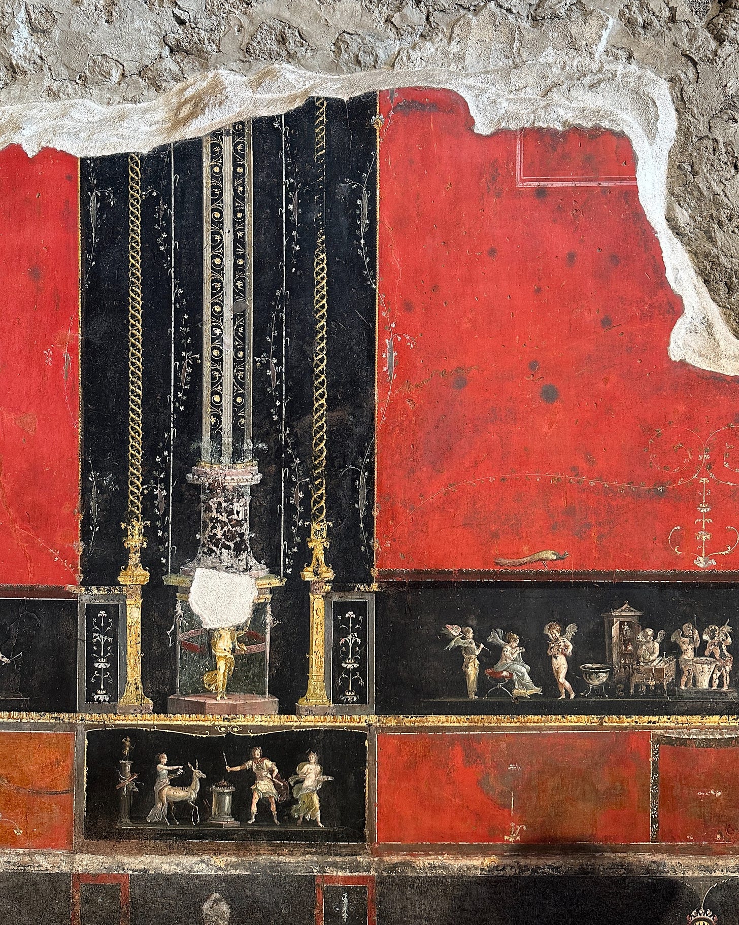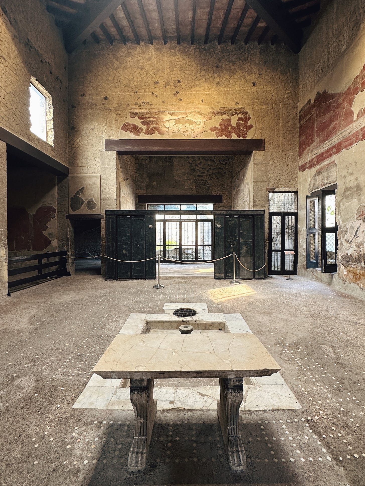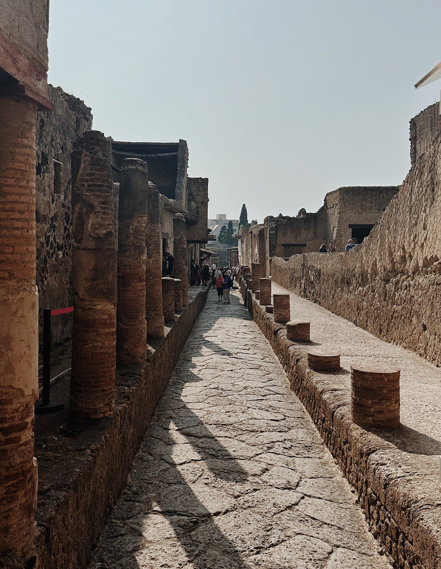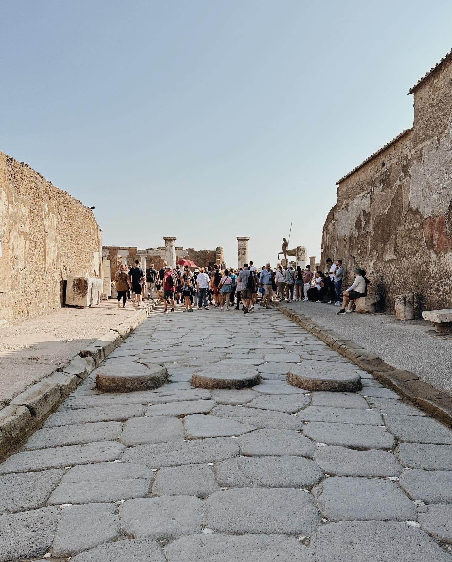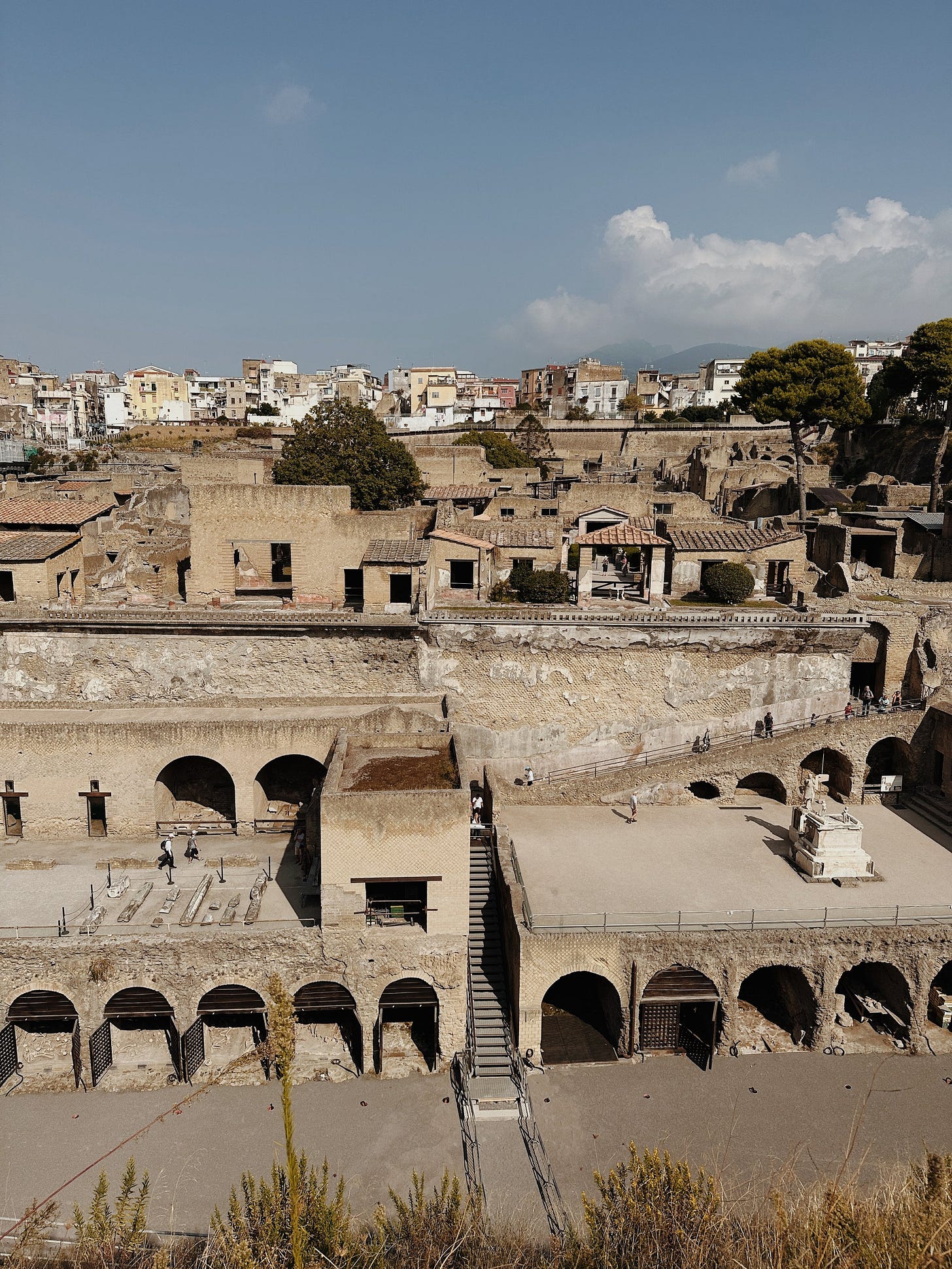 Is much smaller, less excavated but overall finer than Pompeii. Due to the difference in location/how Vesuvius’ eruption affected it, there you can see full second stories of Roman houses, wooden furniture and doors in situ, and more details overall. It feels like the Romans are just out of town somewhere.