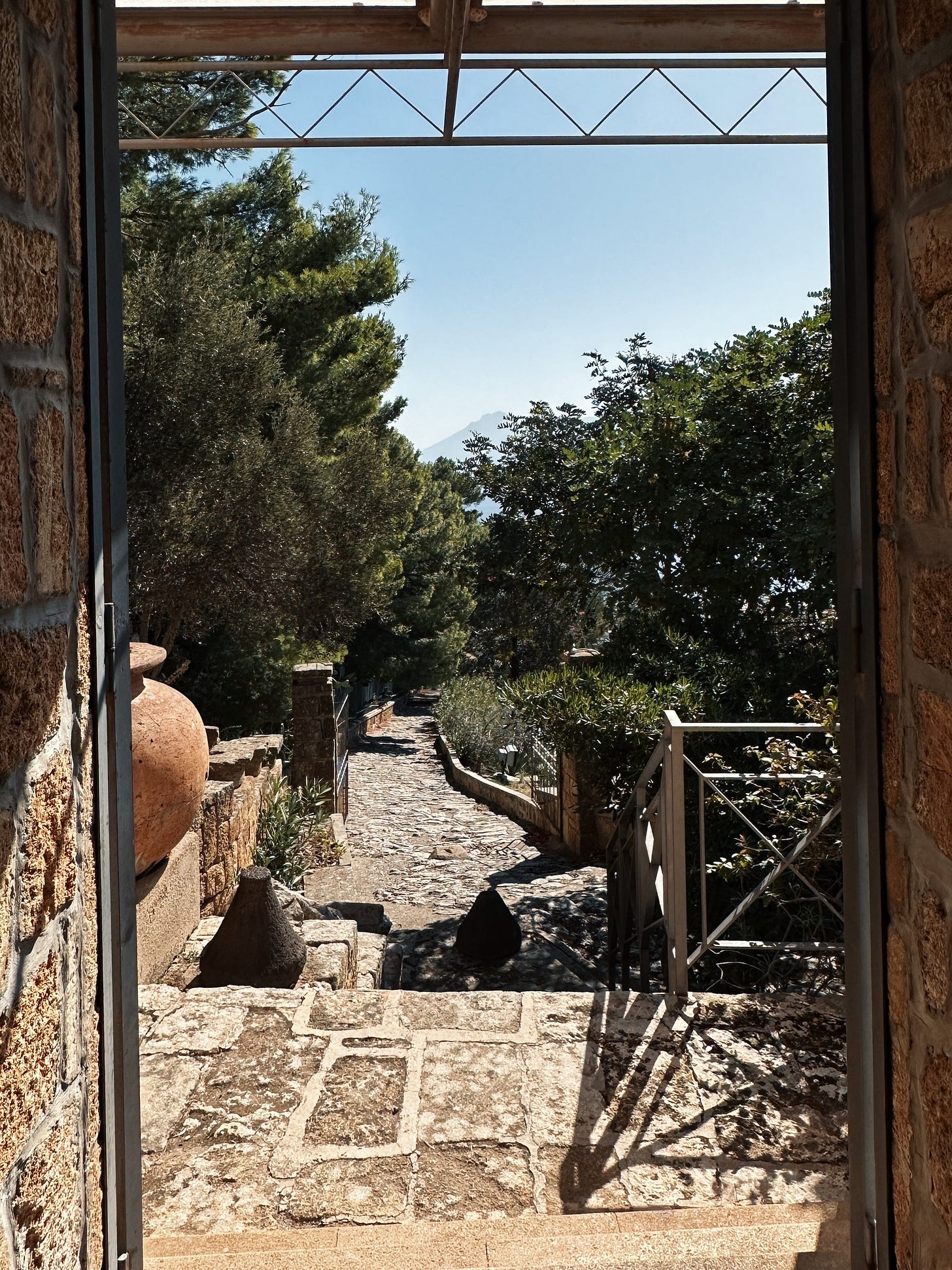 We stopped in Solunto with an option to hike up to the archeological site. I had looked up the site the night before and saw how insane the climb was and said, “yeah, it’s a no for me, dog.” I hiked up to the museum to wander around but went no further. My parents went up to the site, but my mom only made it to the top of the first path before seeing that the hike part just kept going and turned around. You can watch a drone tour here to get my drift. And someone fell and sprained their ankle. I knew it.